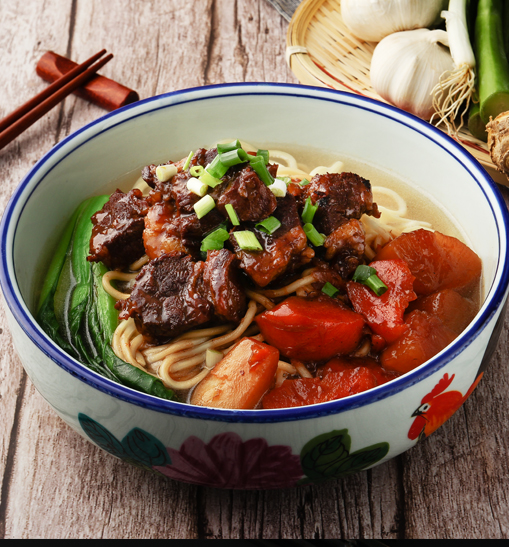 面放入滚水中煮一分半钟,迅速捞起备用。热锅把调味牛肉煮至收汁,